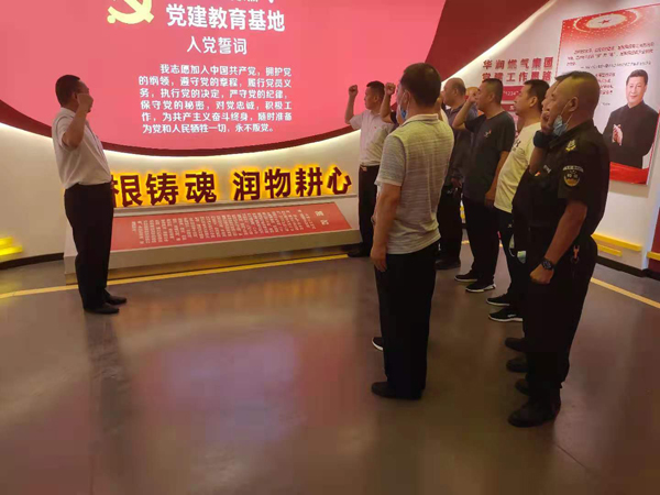 走進(jìn)大廳,首先映入大家眼前的是“強(qiáng)根鑄魂,潤物耕心”幾個(gè)大字,體現(xiàn)了華潤人強(qiáng)烈的服務(wù)理念,在一副副鮮明特色的紅色教育展板前了解到華潤燃?xì)獍碴柗止驹谥袊伯a(chǎn)黨的領(lǐng)導(dǎo)下各個(gè)階段發(fā)展歷程和強(qiáng)烈的潤物無聲的服務(wù)客戶理念。參觀完畢,大家在支部書記陳志軍帶領(lǐng)下,舉起右拳,莊嚴(yán)重溫入黨誓詞。
