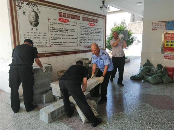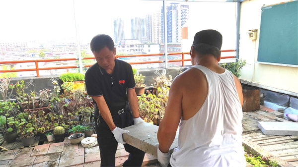 由于該校教學樓上遺留有一定數(shù)量的花池、石塊、石槽、建筑塊、水泥塊、地板、磚等物,校方排查存在安全隱患,需要把樓頂?shù)臇|西清運下來。按照支部組織謀劃安排,當日上午8點半,在黨員、中隊長劉宇,預備黨員、副中隊長楊承濤帶領(lǐng)下,同志們齊心協(xié)力、相互配合,采取接力方式向下轉(zhuǎn)運。有的一塊石頭有二三百斤,他們就用繩子捆住向下抬,一個個累得汗流浹背,但沒有一個人叫苦叫累,張運洲邊干邊反復提醒大家注意安全。他們利用一上午時間,把大部分體積較大的石塊、石板、地磚等物安全清理下樓,又把清運堆積在樓道的東西,搬運到200米外的樓后隱蔽處。