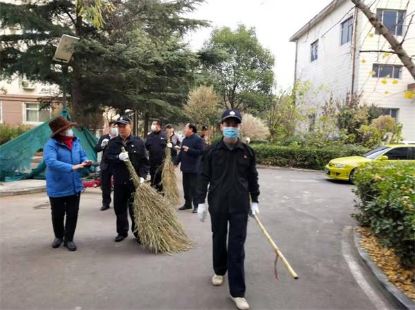 黨員們?cè)邗r艷的黨旗下,清理該小區(qū)健身廣場(chǎng)、籃球場(chǎng)、小區(qū)內(nèi)公共道路的落葉和垃圾。他們有的拿掃帚,有的持鐵锨,有的推車?yán)\(yùn)垃圾,熱情高漲,干勁沖天。雖然天氣寒冷,但是大家身上很快就出汗了。經(jīng)過2個(gè)多小時(shí)的緊張勞動(dòng),預(yù)定區(qū)域被清理的干干凈凈。
