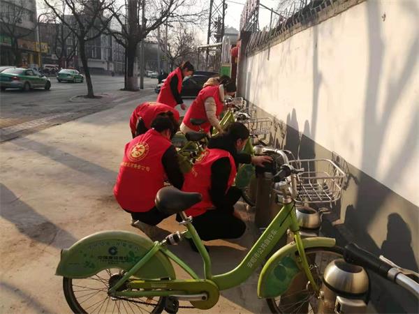 活動(dòng)現(xiàn)場(chǎng),大家絲毫不受寒冷天氣的影響,熱情積極,不怕臟、不怕苦、不怕累,發(fā)揮黨員的優(yōu)良作風(fēng),有的用抹布擦拭路邊公共自行車,有的鏟除小區(qū)樓道口的“牛皮癬”小廣告,有的用掃帚清掃院內(nèi)的垃圾,在大家的共同努力下,公共自行車和小區(qū)的環(huán)境變得干凈、整潔,受到了過(guò)往群眾的一致好評(píng)。